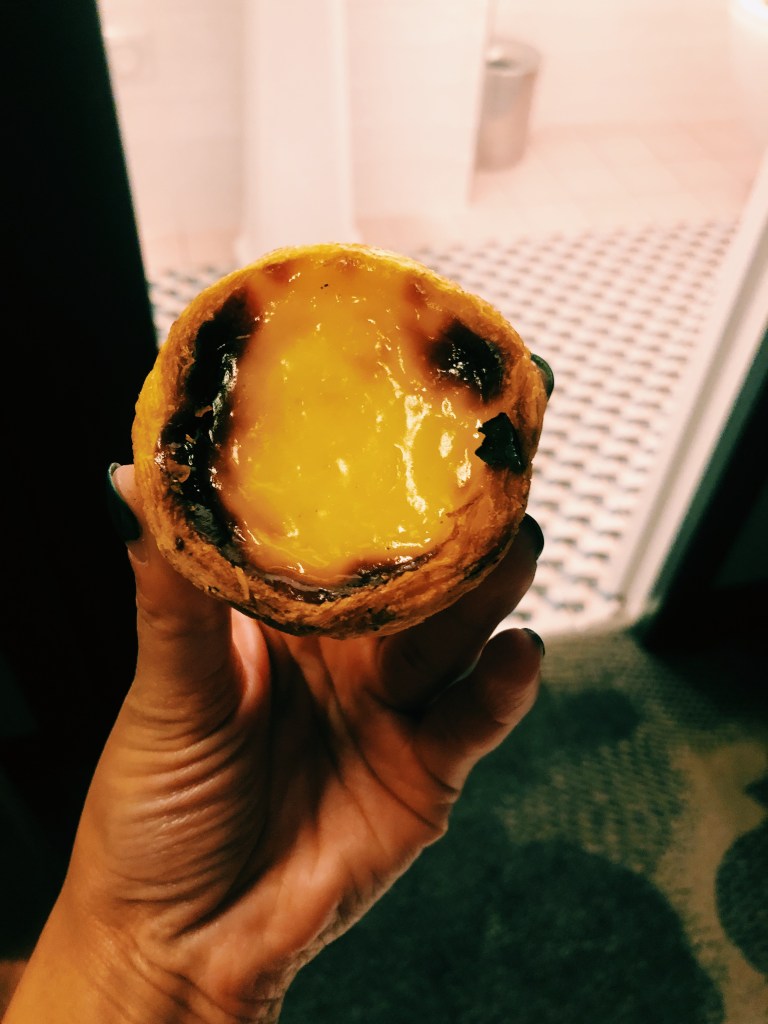 That night I visited Time Out Market in the Cais de Sodre district. We just recently got one in Chicago – I hadn’t been yet, but figured I should check it out. It’s a hip food hall that showcases all sorts of cuisine and was perfect for an indecisive eater (like myself) who wanted to try some local staples. I tried quite a few local dishes from a few different vendors while I sat alone and people watched. At the end of dinner, I was approached by a man and woman who proceed to tell me that their whole table found me gorgeous and made a bet/game that whoever lost had to approach me and invite me over for a drink. The guy who lost got shy and they couldn’t let me leave without inviting me over for a drink – I oblige (honestly had the woman not been with them, I would’ve opted out). Upon joining the table, I’m told they’re a group of physical therapists and coaches for a Spanish soccer team and were in town for a game. We shared wine and stories of our respective work and then they convinced me to go out with them. We landed in a bar on Pink Street, where all Lisbon’s clubs and bars are located, with a cover band who KILLED IT (I heard D’Angelo from the street and knew we had to go in!). We stayed out until 4am, dancing to all the top 40 American hits and a bit of reggaeton. I was in heaven (minus the 300 cigarettes being smoked around me and the thought that my braids would hold this smell for the next few days). After a full day of recovering (no kidding), I got out of bed to pack, grab pizza and pastel de nata, the famed egg custard that everyone raves over. For the record, they were 100% right!